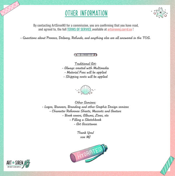A: Check my Commission Page! You MUST read the TOS prior to contact!Q: Preferred Way To Support You?